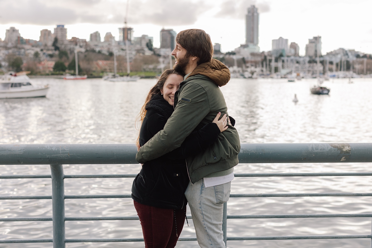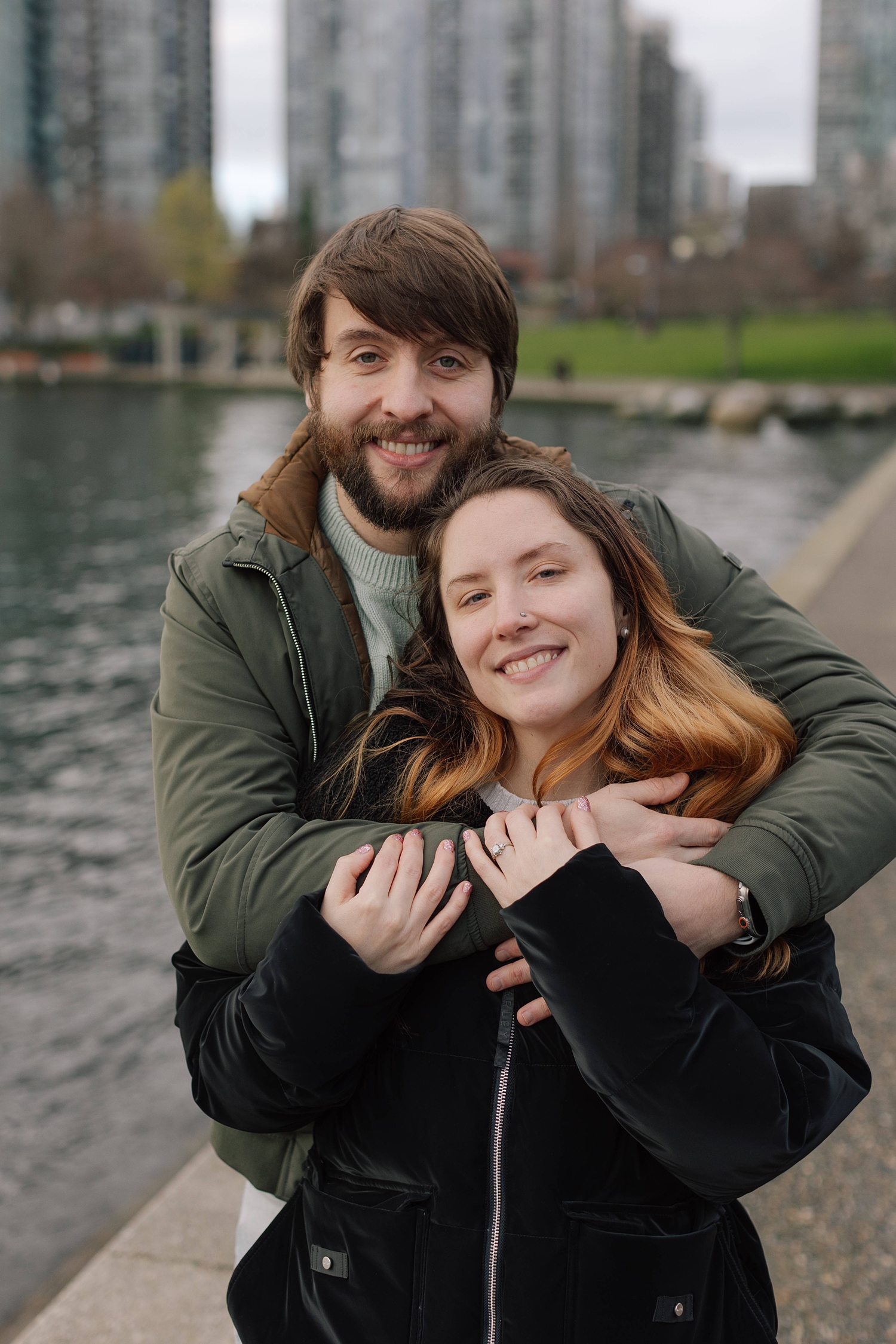 He and I planned a simple walking path along the water in Yaletown for his big moment, and I waited nearby doing my best to remain incognito :) Proposals are always a bit nerve-racking to photograph, but I’ve found that choosing busy city spots makes it so easy to blend in! Once the question is popped, I always approach quickly to get closer photos (can’t ruin the surprise then!) — and as I did this, Leann was so wrapped up in the moment I thought “Has she even noticed me yet?” I kept photographing and a few minutes later went and introduced myself. Turns out, she hadn’t noticed me at all which I thought was so cute. She was very in the moment, and these two were so delightfully happy. Truly a joy!!
