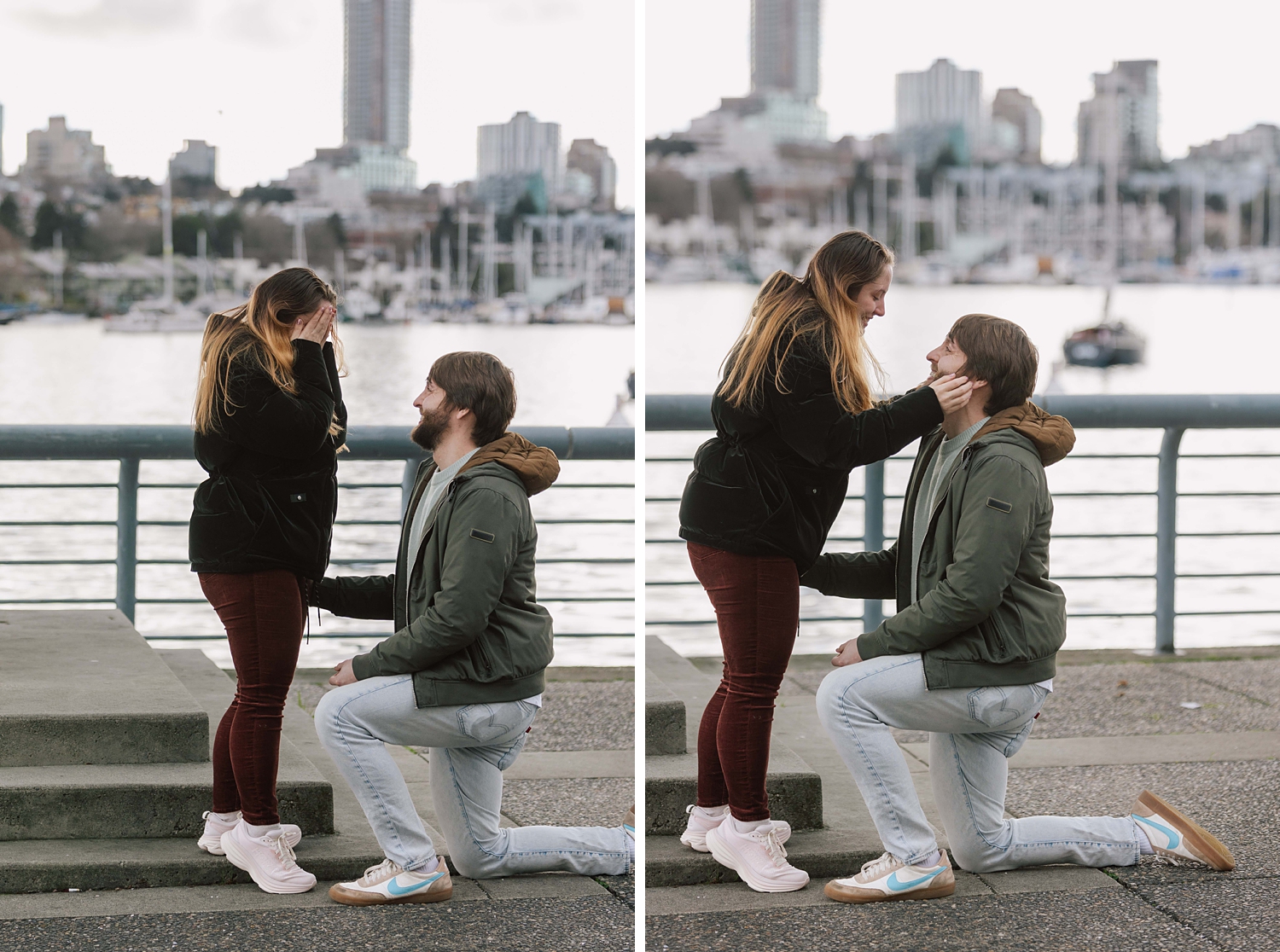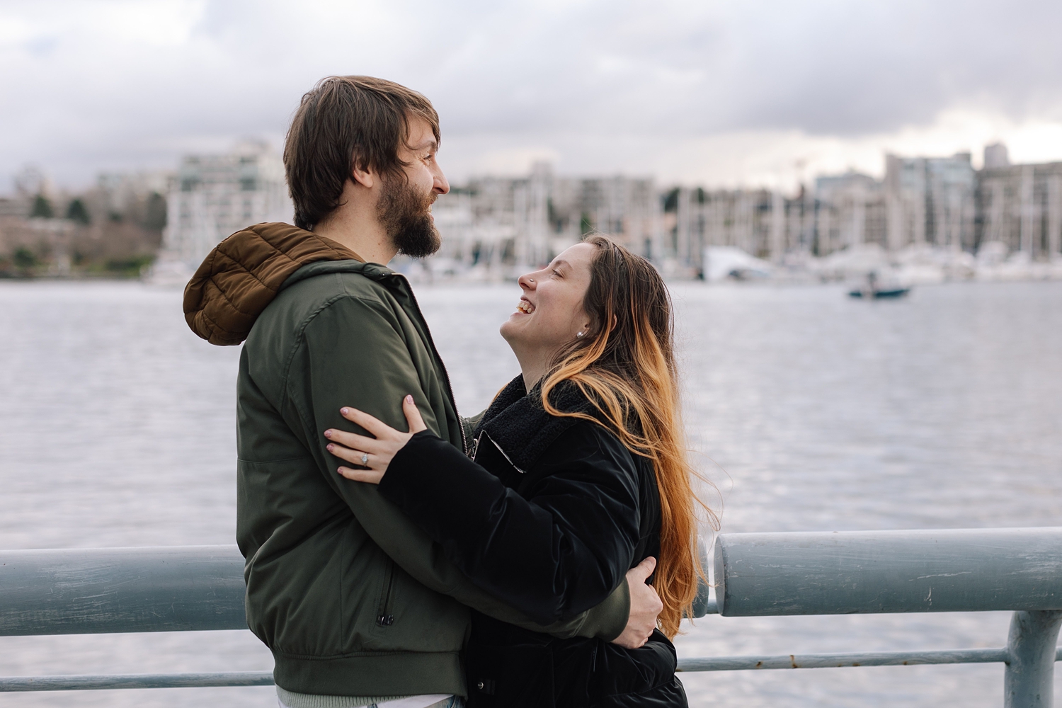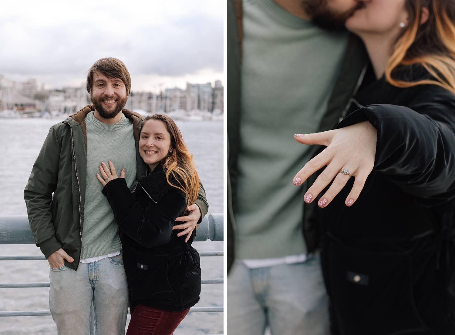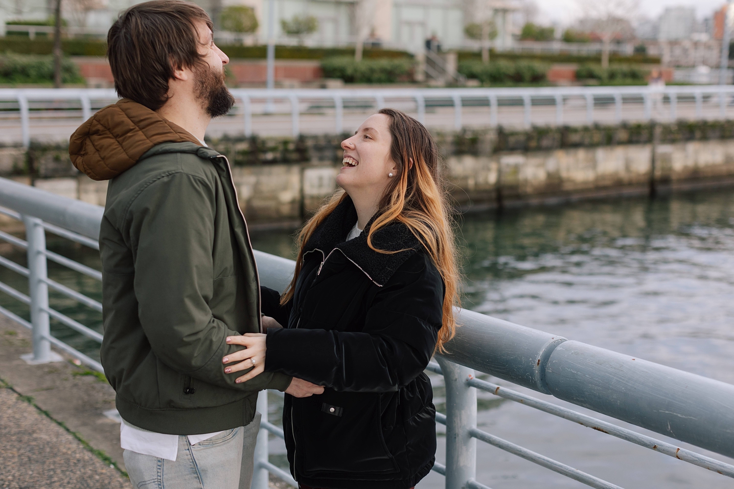 He and I planned a simple walking path along the water in Yaletown for his big moment, and I waited nearby doing my best to remain incognito :) Proposals are always a bit nerve-racking to photograph, but I’ve found that choosing busy city spots makes it so easy to blend in! Once the question is popped, I always approach quickly to get closer photos (can’t ruin the surprise then!) — and as I did this, Leann was so wrapped up in the moment I thought “Has she even noticed me yet?” I kept photographing and a few minutes later went and introduced myself. Turns out, she hadn’t noticed me at all which I thought was so cute. She was very in the moment, and these two were so delightfully happy. Truly a joy!!