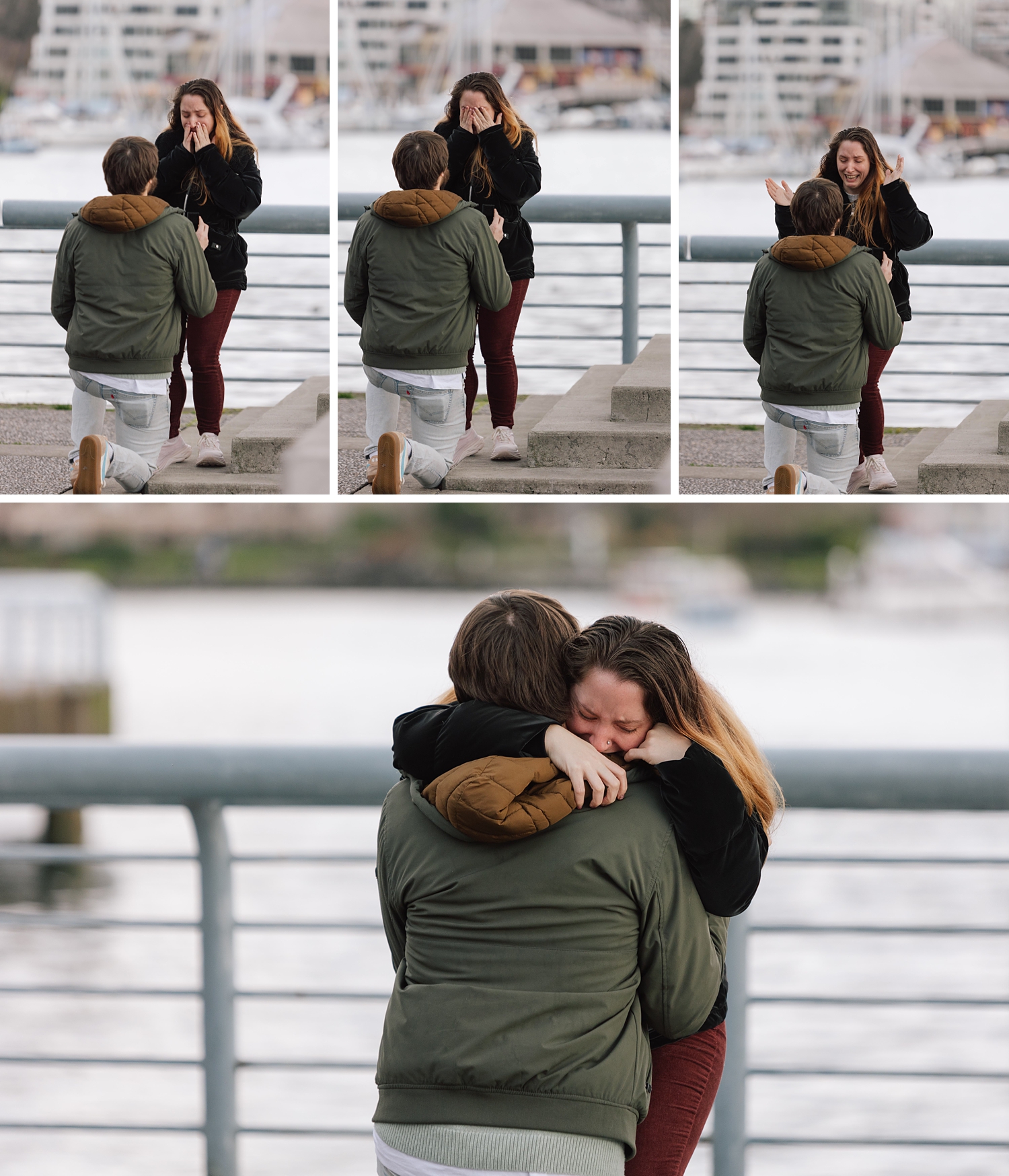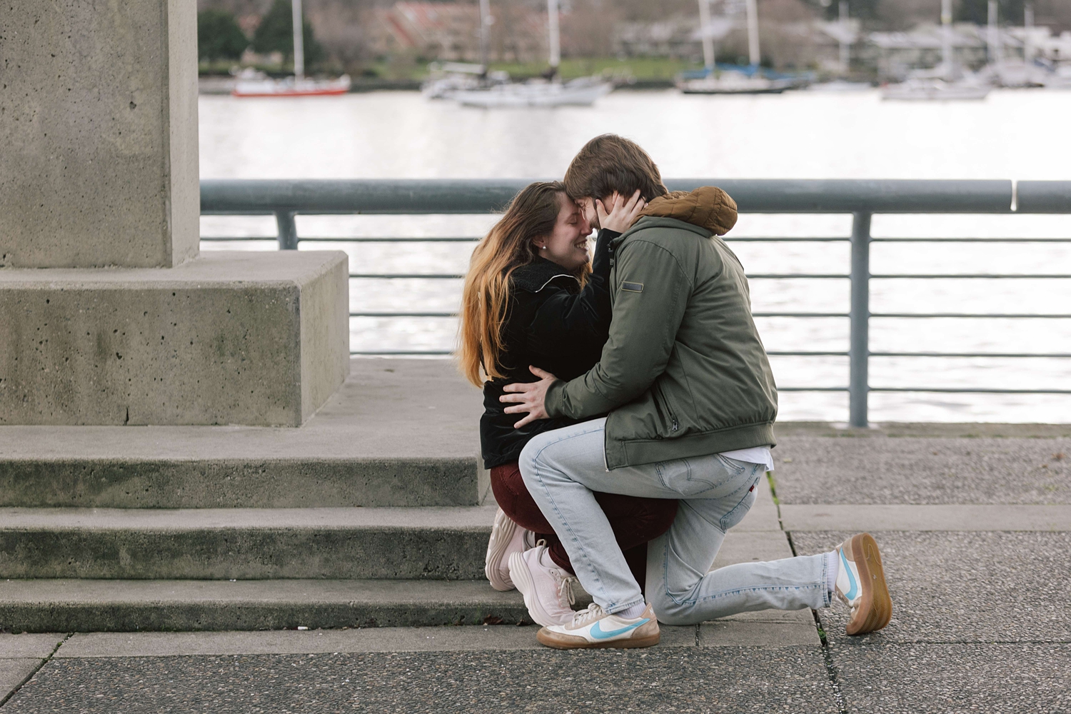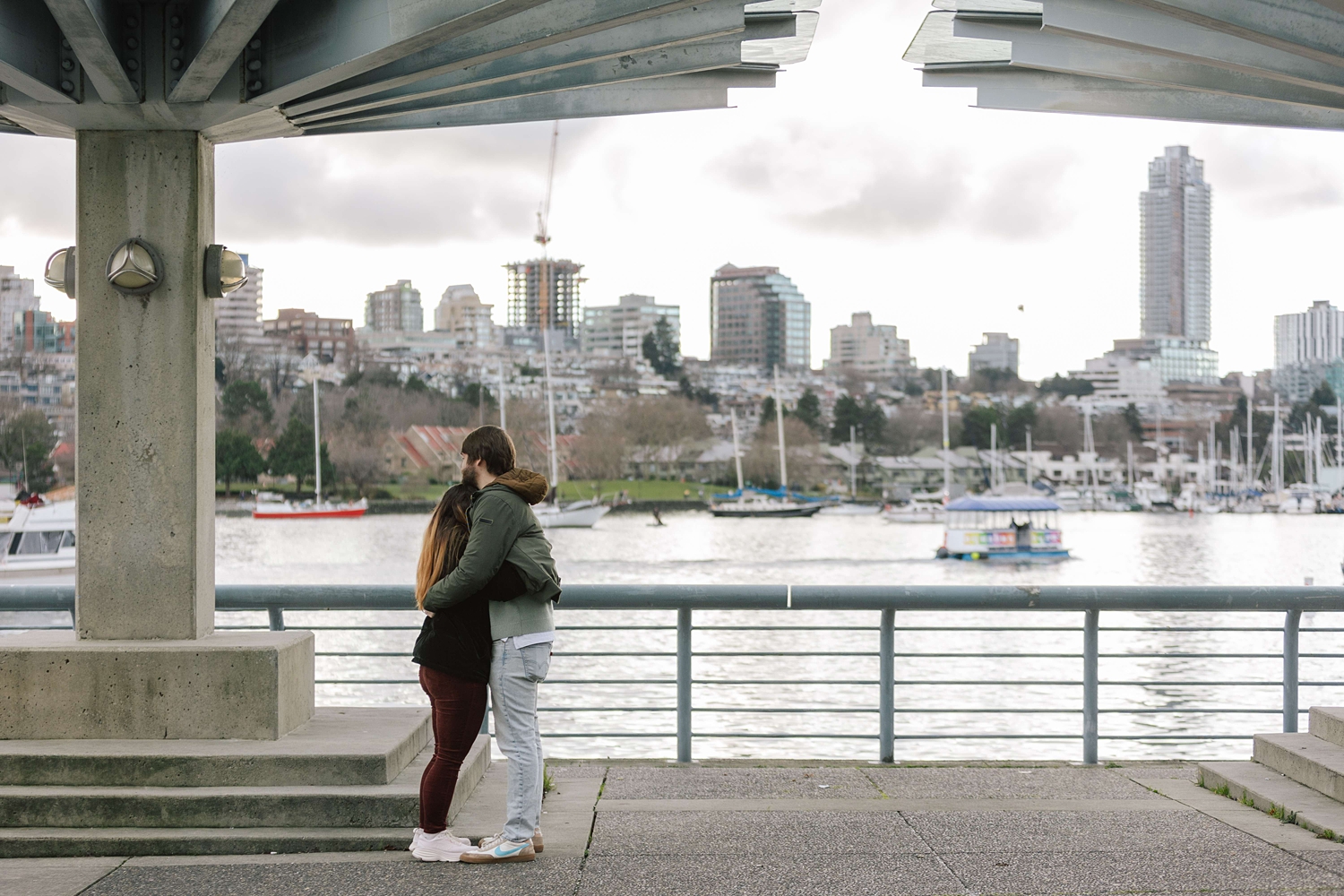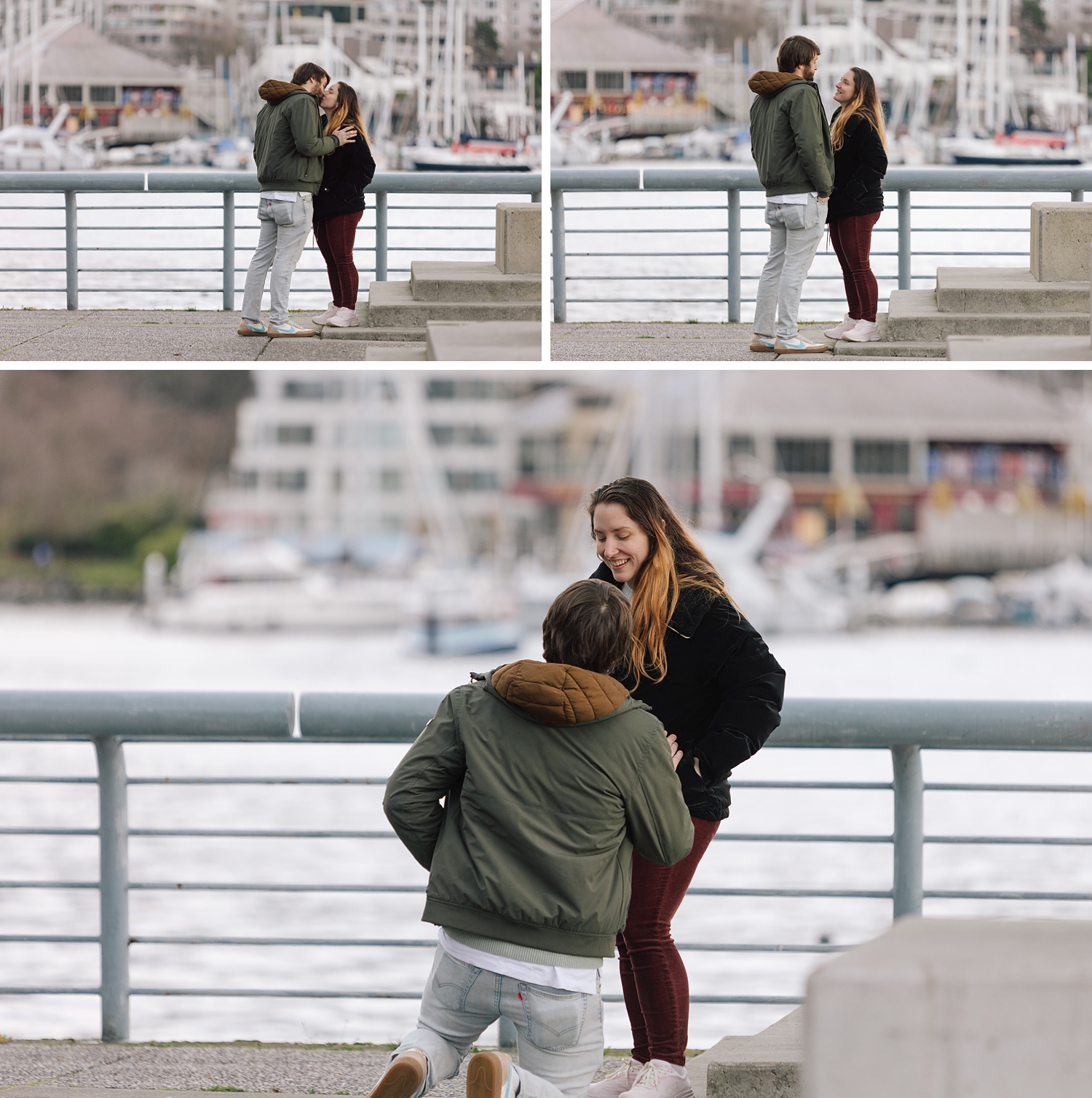 He and I planned a simple walking path along the water in Yaletown for his big moment, and I waited nearby doing my best to remain incognito :) Proposals are always a bit nerve-racking to photograph, but I’ve found that choosing busy city spots makes it so easy to blend in! Once the question is popped, I always approach quickly to get closer photos (can’t ruin the surprise then!) — and as I did this, Leann was so wrapped up in the moment I thought “Has she even noticed me yet?” I kept photographing and a few minutes later went and introduced myself. Turns out, she hadn’t noticed me at all which I thought was so cute. She was very in the moment, and these two were so delightfully happy. Truly a joy!!